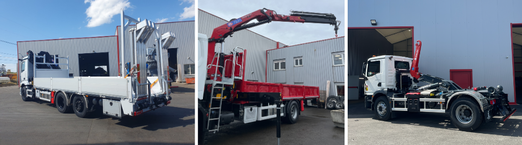 Nous réalisons le montage neuf d’une large gamme d’équipements adaptés à vos besoins professionnels. Nos bétonnières portées LIEBHERR assurent performance et fiabilité pour les travaux intensifs. Les bennes basculantes MEILLER, COX, CABRETA ou RCI optimisent le transport de matériaux. Pour la manutention, nos grues HMF et PM offrent robustesse et précision. Nous proposons également des plateaux sur mesure, avec ou sans bâches, et des fourgons aménagés équipés de hayons DALBY pour les utilitaires. Nos systèmes d’échange hydraulique RTL, brevetés, apportent une flexibilité inégalée.